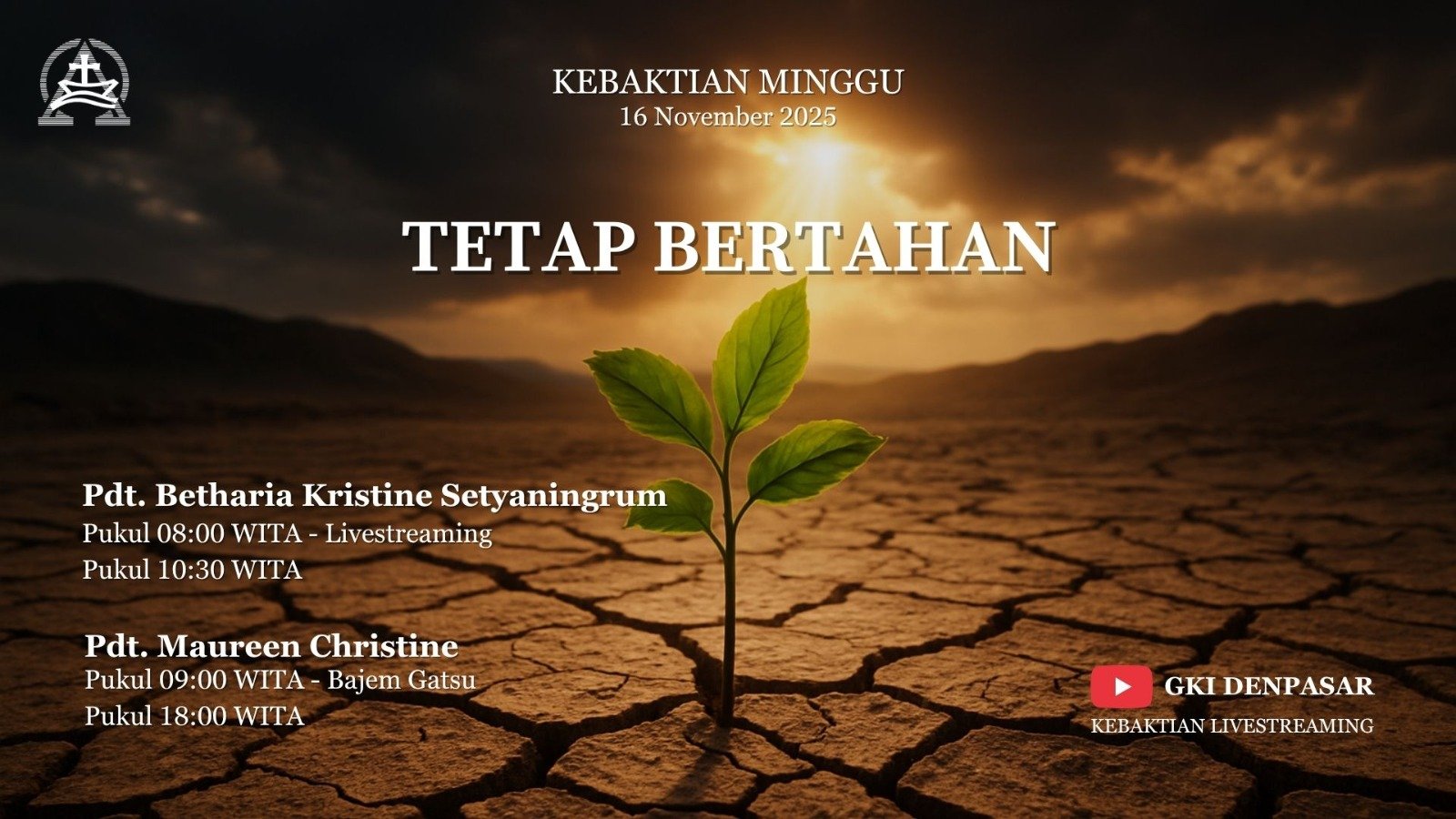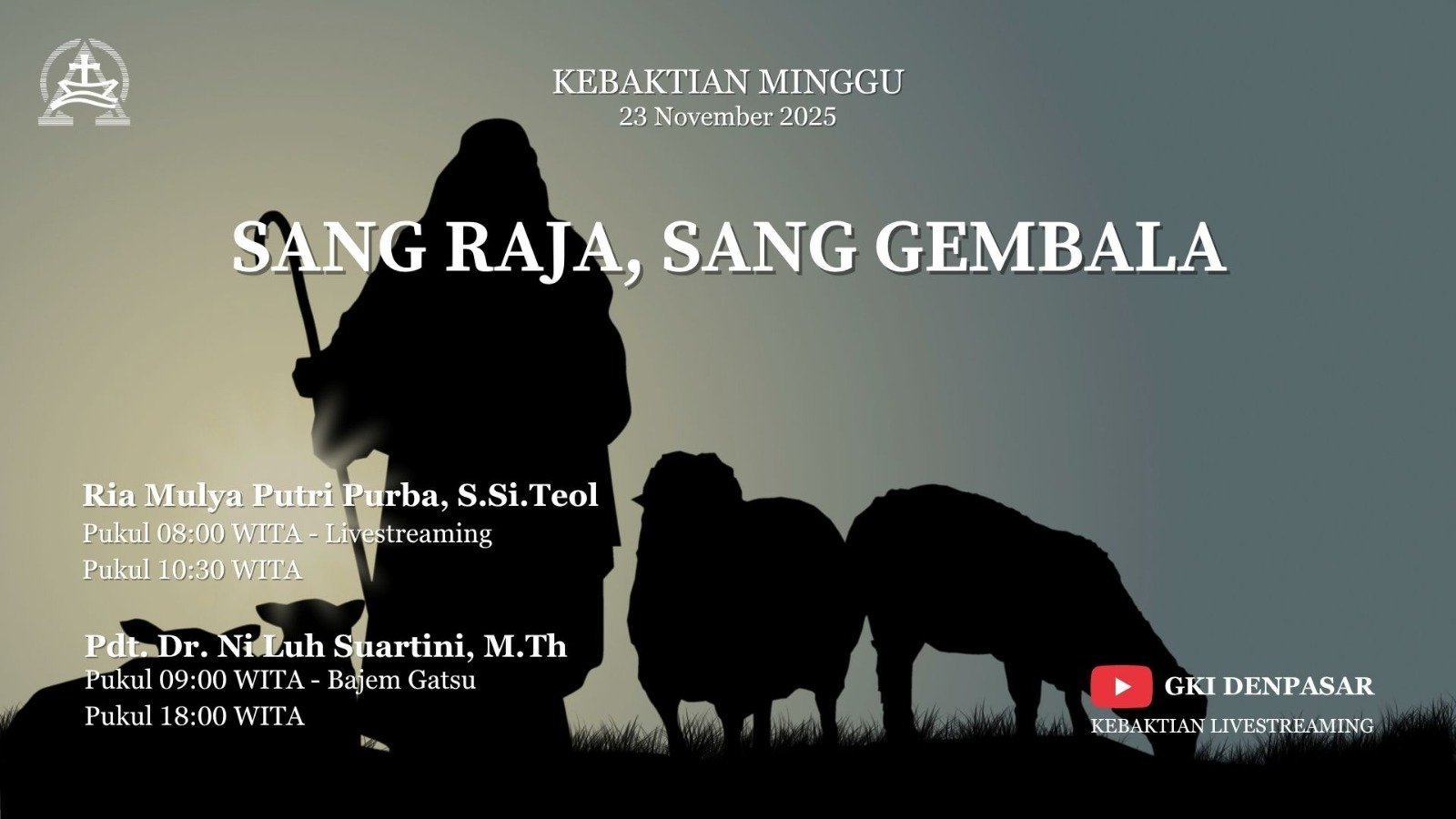 Kebaktian GKI Denpasar ( Minggu, 23 November 2025 ) PF: Ria Mulya Putri Purba, S.Si Teol KU I 08.00 Wita – Live …
